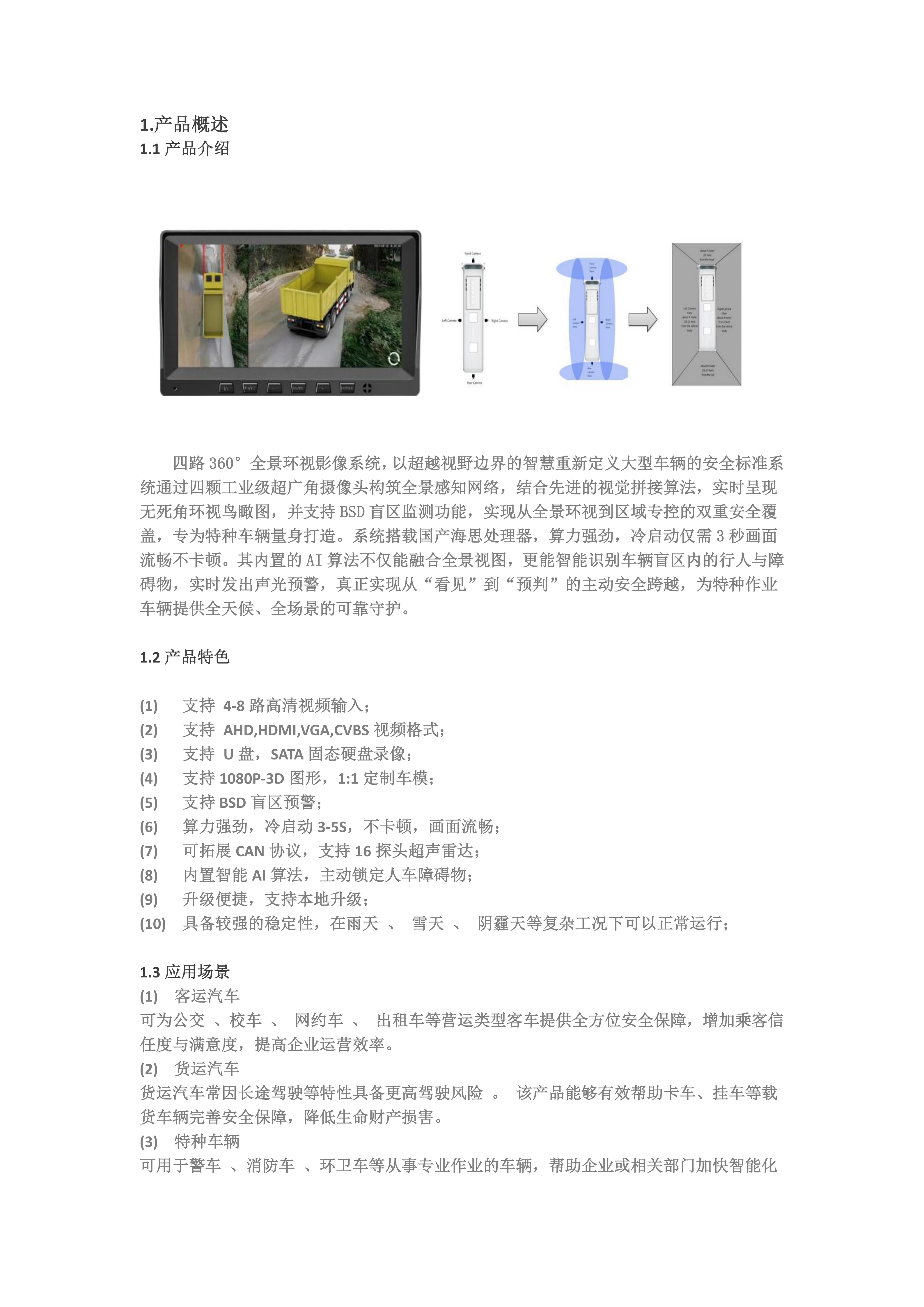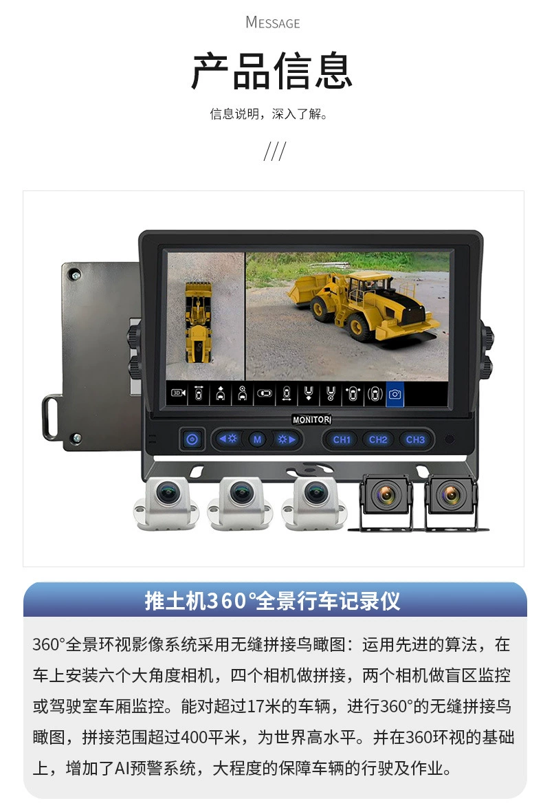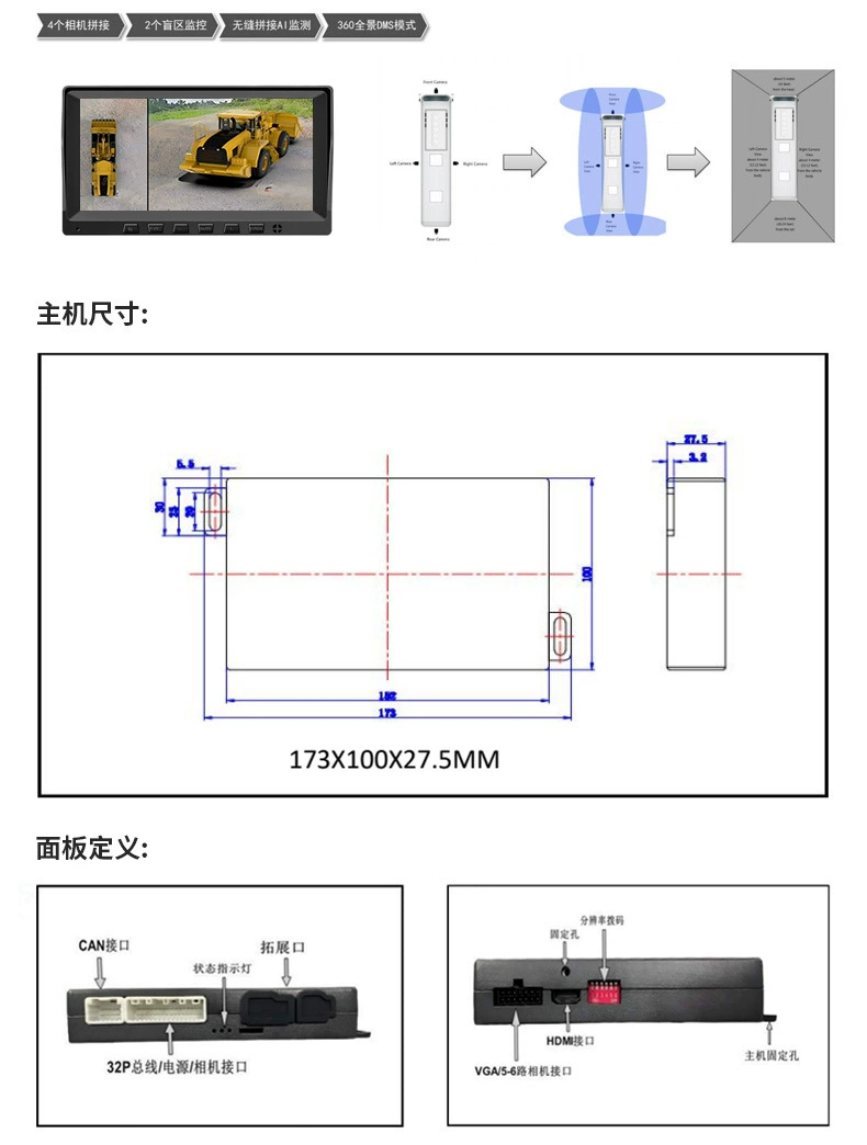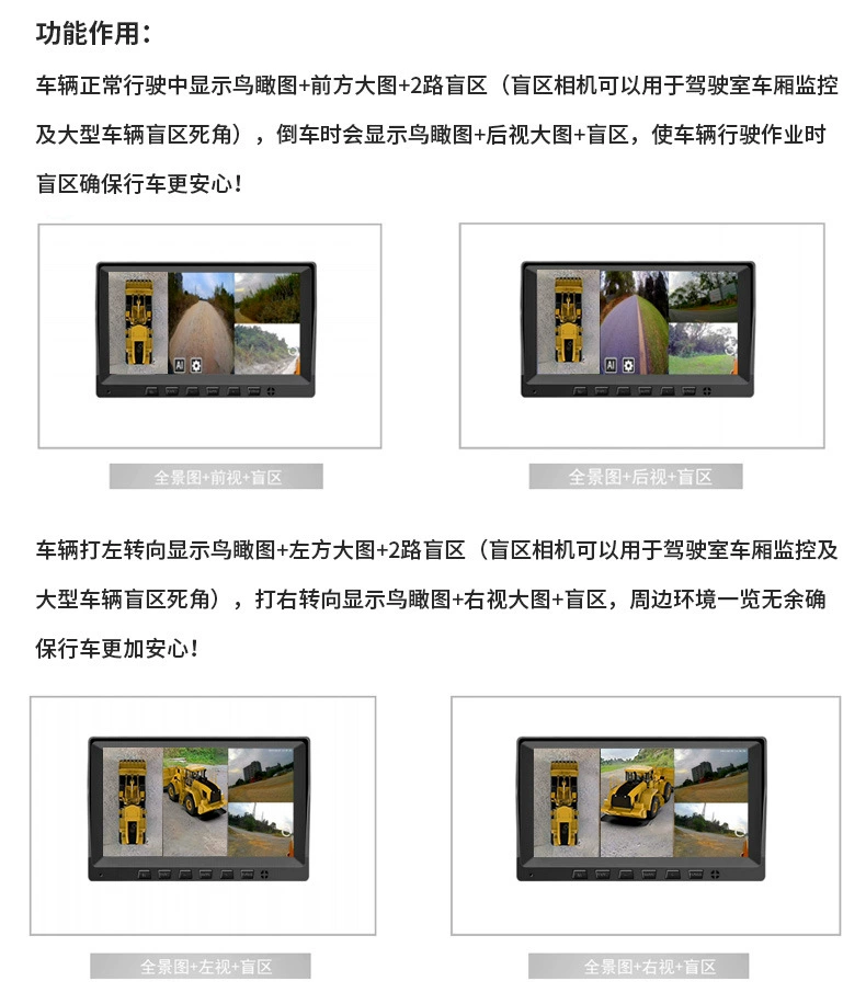 本系统通过在车辆四周精准部署4-6个广角摄像头,构建覆盖全车无死角的视觉感知网络。系统同步采集多路视频信号,并通过先进算法实时处理、拼接成一幅无缝的360°车身俯视图,最终在中控屏上清晰显示。该方案能有效消除视觉盲区,显著提升大型及特种车辆在复杂环境下的操作安全性,广泛应用于公交车、起重机、货柜车、消防车、叉车、挖掘机等多种车型。